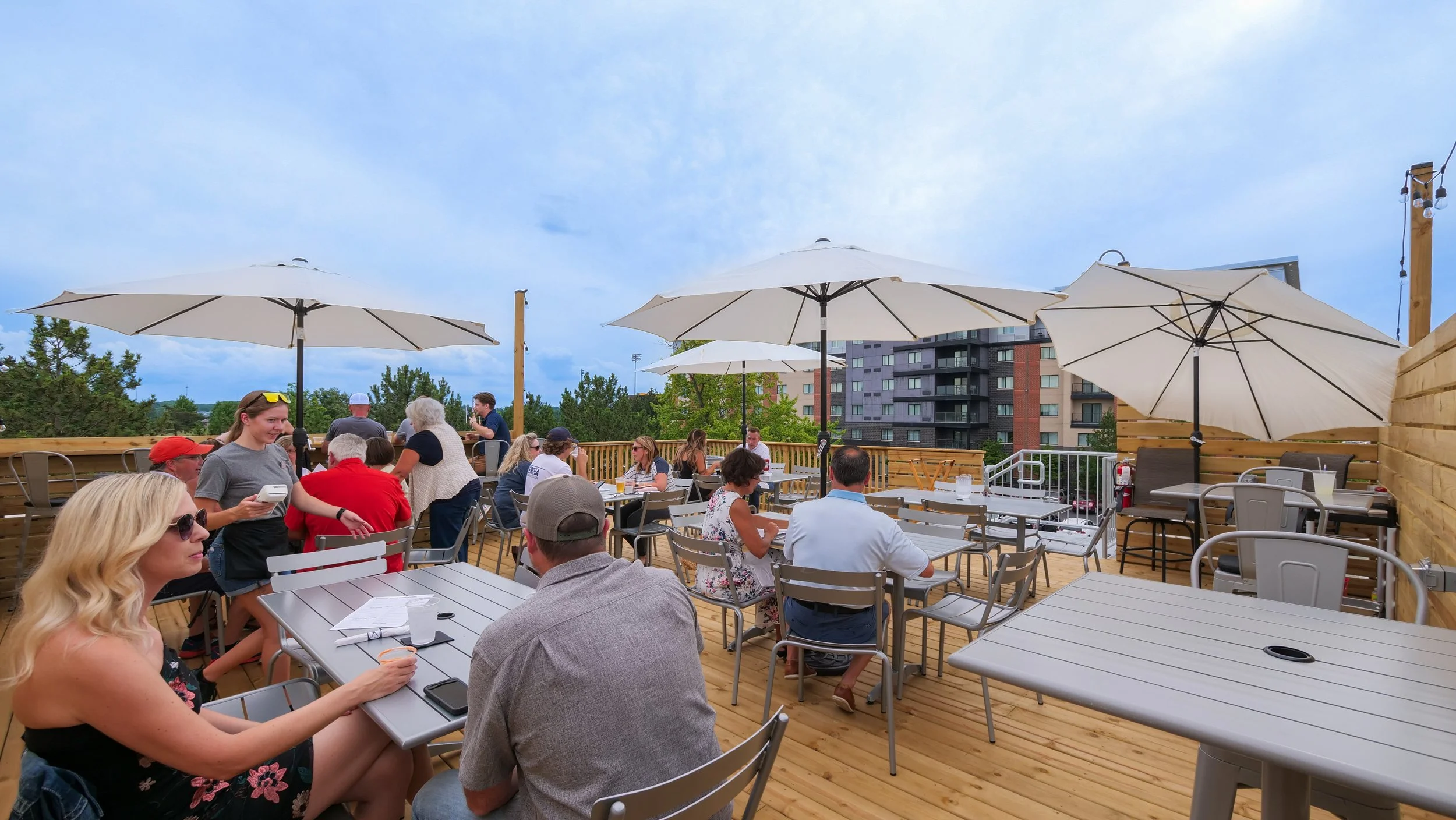 New in 2024, we opened our Mt. Pleasant rooftop bar, serving a full restaurant menu. Seating approximately 50, the unique outdoor dining space overlooks part of Central Michigan University's campus, CMU football field, and the neighboring Courtyard Marriott hotel—which are in close walking distance. While generally open to the public, this outdoor restaurant space can be reserved for private events in Mt. Pleasant.